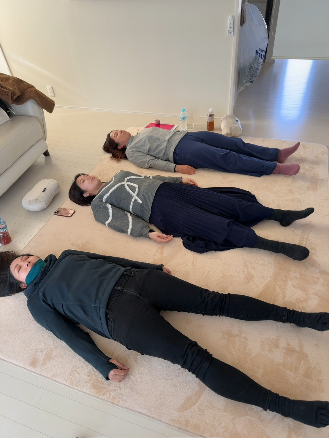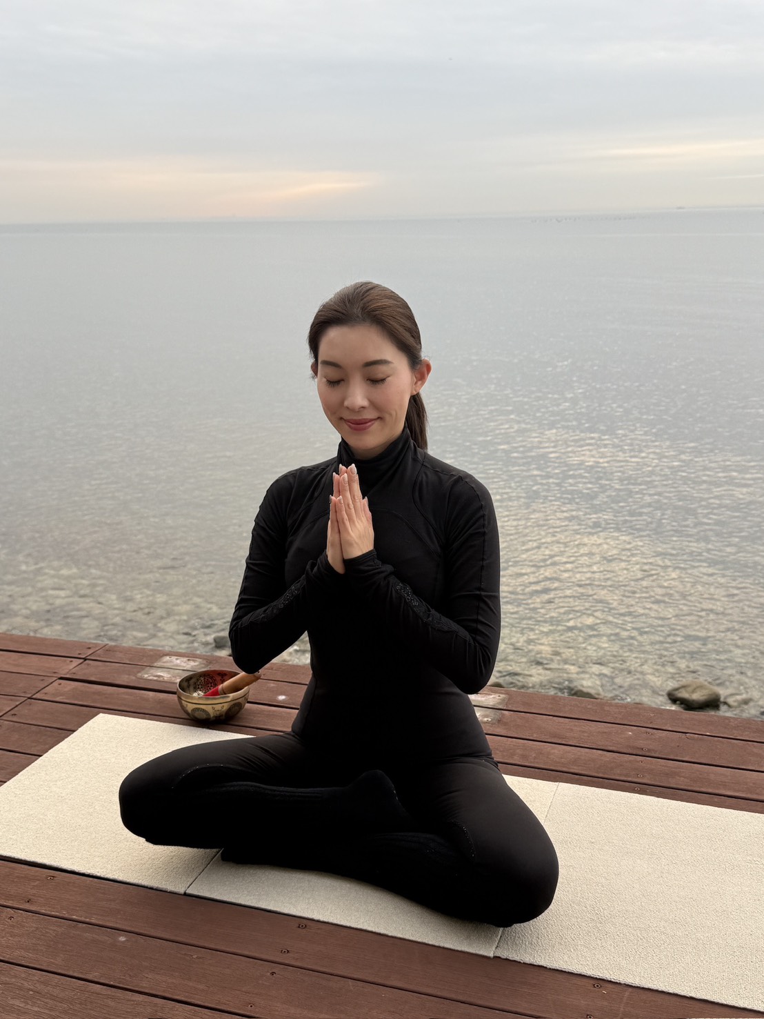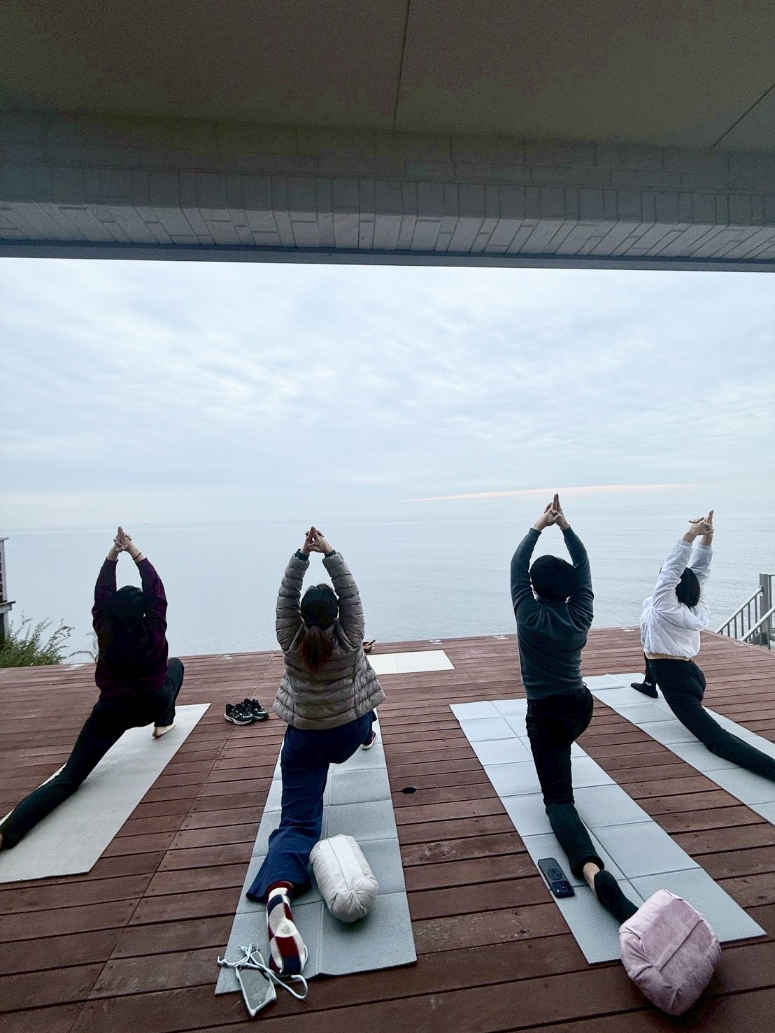 歩く瞑想、食べる瞑想、そして海辺でのヨガ。